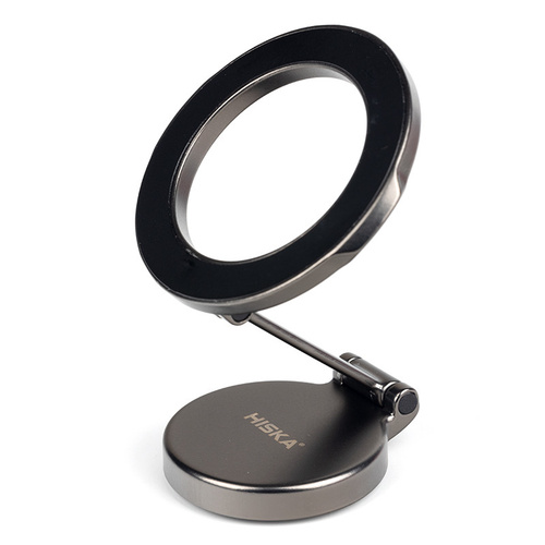 هیسکا یک هولدر موبایل داخل خودرو بسیار جذاب را طراحی کرده که از قابلیت مغناطیسی برخوردار است. هولدر هیسکا مدل HK-2205 مناسب نصب روی داشبورد خودرو است؛ طراحی بسیار جمعوجوری دارد و علاوه بر داشبورد میتوانید آن را روی سطوح صاف دیگر هم نصب کنید. بخشهای اصلی بدنه پایه گوشی داشبوردی را آلیاژ روی تشکیل داده و رنگ خاکستری بسیار زیبایی دارد. محل اتصال گوشی هم با سیلیکون تشکیل شده که ضد لغزش بوده و مانع ایجاد خطوخش روی بدنه گوشی یا قاب میشود. با تلفنهای همراه دارای نمایشگر 4.0-6.7 اینچی سازگار است و با یک دست میتوانید دستگاهتان را روی آن نصب کنید. مفصلی در بخش اتصال بازو و پایه روی سطح، و محل اتصال بازو و نگهدارنده گوشی هولدر مگنتی ویوو طراحی شده که از قابلیت چرخش برخوردار است و به راحتی میتوانید با توجه به نیازتان زاویه دید مناسب نسبت به گوشی خود را فراهم کنید. این هولدر موبایل هیسکا مدل HK-2205 با انواع برندهای گوشیهای موبایل از جمله آیفونهای سری 17 ،16 ،15 ،14، 13 و 12 که دارای فناوری MagSafe هستند و سامسونگ، هوآوی، شیائومی دارای صفحه نمایش 4.7 تا 7 اینچ هستند سازگار است. البته گوشیهای به جز آیفون برای اتصال به آن نیاز به برچسب مغناطیسی دارند که این برچسب ها به همراه محصول در بسته بندی آن قرار داده شده است.